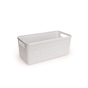 Cesto Organizador Juta Alongada Rattan de Plástico Resistente Capacidade 1,5 Litros 4 Unidades Cor: branco DESCRITIVO TAMANHO P: Peso: 100 g Largura: 9,9 cm Comprimento: 20,8 cm Altura: 8,7 cm Capacidade: 1,5 Litros