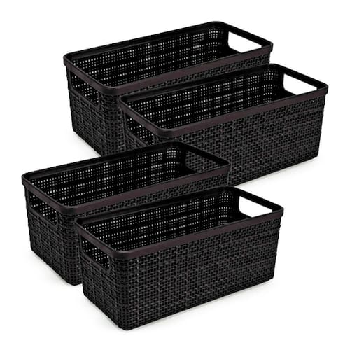 Cesto Organizador Juta Alongada Rattan de Plástico Resistente Capacidade 3,7 Litros 4 Unidades