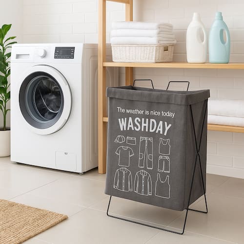 Organize suas roupas de forma prática e estilosa com o Cesto para Roupas Dobrável com Estrutura Metálica. Com estrutura em ferro resistente e corpo em tecido de polipropileno forrado com plástico impermeável, ele é ideal para ambientes como lavanderias, quartos ou banheiros.