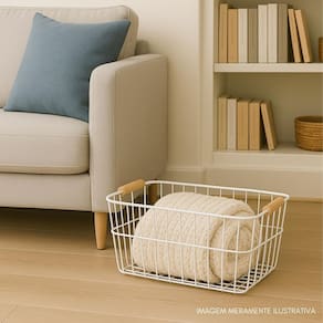 Transforme a organização da sua casa com muito mais estilo Essa cesta é a união perfeita entre praticidade e sofisticação. Com estrutura em metal resistente e alças em madeira natural, ela traz um design minimalista que combina facilmente com diferentes ambientes: sala, cozinha, banheiro, lavanderia ou até mesmo escritório. Além de ser extremamente funcional, é um item que valoriza a decoração, permitindo organizar livros, toalhas, mantas, frutas, utensílios ou até objetos decorativos de forma elegante. O acabamento em metal com contraste das alças de madeira proporciona um toque moderno e acolhedor, ideal para quem busca praticidade sem abrir mão do bom gosto. Seja para organizar ou decorar, essa cesta vai elevar o nível do seu espaço Especificações Técnicas Material: Metal com alças de madeira Medidas: 36 cm comprimento x 23 cm largura x 16 cm altura Cor: Estrutura preta com detalhes em madeira natural Estilo: Moderno, minimalista e versátil Utilização Recomendada: Organização de roupas, toalhas, mantas, revistas, frutas, cosméticos e utensílios em geral Imagens ilustrativas. Marca: Não Informado Ean: 7901010103329