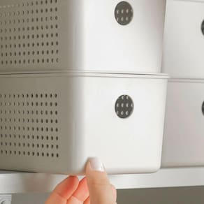 Os Cestos Flow mantêm cada espaço da casa organizado, proporcionando uma rotina fluida e eficiente. São ideais para armazenar e organizar produtos de limpeza, roupas, acessórios ou alimentos. Com oito tamanhos disponíveis, você pode compor como quiser.