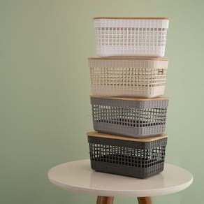 Cesto organizador Ou 2,5L com tampa de bambu Linha Grid