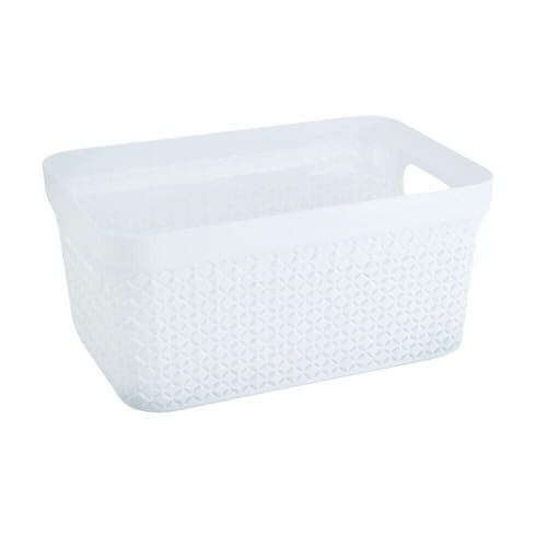Cesto Organizador Plástico 27x13 Branco - Fabricado em plástico, possui design casual com detalhes vazado que o torna delicado e permite circulação de ar;\nEspecificações:\nMarca : KEITA\nTipo de material : Polipropileno\nCores ou Estampa : Branco\nDimensões do Produto : 13 X 27 X 18 CM\nDimensões da Embalagem : 13 X 27 X 18 CM\nPeso Bruto (Gramas) : 0.181 Marca: Não Informado