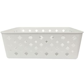 Fabricado em plástico resistente, o cesto possui a cor branca, que combina com qualquer ambiente. Suas medidas são 19x13,5x6,5 cm, ideal para acomodar diversos objetos, desde materiais de escritório até produtos de higiene pessoal.