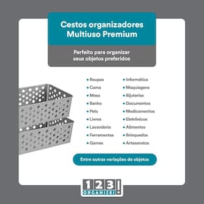 Com a marca 123Organizei, você pode confiar na qualidade e durabilidade desses cestos. Eles foram projetados para resistir ao uso diário e manter seus objetos protegidos e organizados por muito tempo.