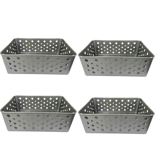 Feitos em plástico de alta qualidade, esses cestos possuem uma cor cinza elegante que combina com qualquer estilo de decoração. Suas medidas de 19x13,5x6,5cm são perfeitas para acomodar diferentes tamanhos de itens, garantindo praticidade e versatilidade.