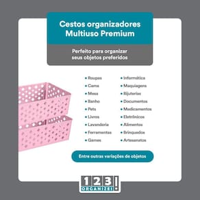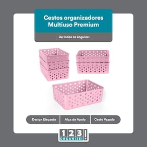 Com o Kit 8 Cesto Multiuso Organizador Premium Rosa 123Organizei, você poderá organizar sua casa de forma prática e eficiente. Mantenha seus objetos sempre à mão e facilite o seu dia a dia.