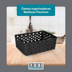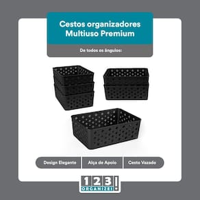 Fabricado em plástico de alta qualidade, o Cesto Multiuso Organizador Premium Preto possui a cor preta, o que confere um visual moderno e elegante. Além disso, a marca 123Organizei garante a sua durabilidade e resistência.
