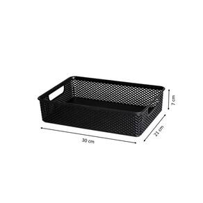 Cesto Organizador Linea B5 Preto Descrição:O Cesto Organizador Linea B5 Preto é confeccionado em plastico resistente de qualidade. Ideal para organizar diversos ambientes como cozinha, despensa, banheiro, lavanderia e escritorio. Com superficie vazada que facilita a higienizacao e evita acúmulo de poeira e bacterias. Perfeito para armarios, prateleiras, nichos e bancadas trazendo praticidade e organizacao para o seu dia a dia. Descrição Técnica:Material plastico polipropilenoCor pretoDimensoes 21 x 30 x 7 cm profundidade x largura x alturaPeso 194 gramasConservacao para limpeza utilize agua e detergente neutro pano macio ou flanela levemente umidosNao utilizar solventes ou produtos corrosivosManter longe do sol umidade ou temperaturas elevadas
