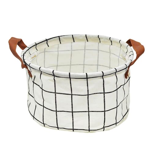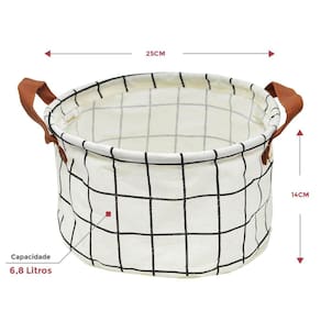 Cesto Organizador Redondo De Tecido Estampado Alça De Couro