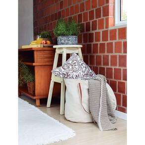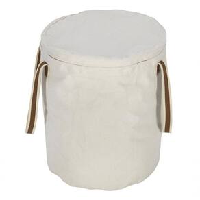1. Alças para transporte.2. Tampa com fecho.3. Lona 100% algodão na cor natural.4. Não é autosustentável.5. Pode ser guardado dobrado.6. Não é impermeável.