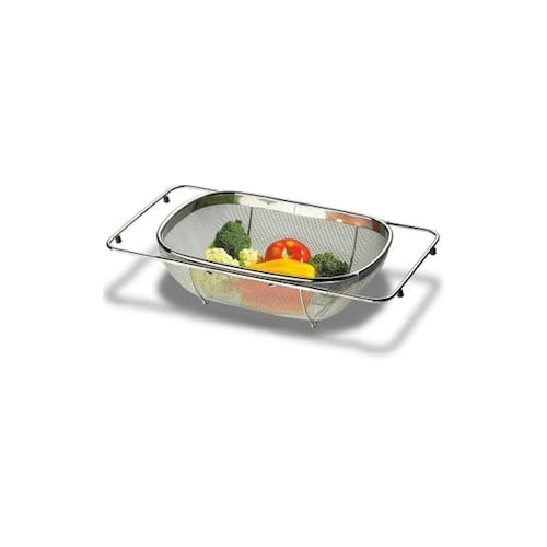 Depois de chegar da feira, é preciso lavar os alimentos antes de guardá-los ou utilizá-los. O cesto para lavar frutas e verduras da linha Verona descomplica essa tarefa. O produto possui um cesto em aço inox (11cmX24,5cm) com hastes reguláveis para utilização na pia e alças que facilitam o manuseio. O material é resistente e não possui porosidades, o que facilita a sua limpeza. Fechada, a peça tem 11cmx24,5cmx36cm e aberta as dimensões são de 11cmx24,5cmx56cm.