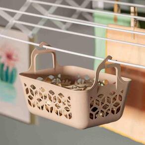 Cesto para prendedores de roupa com gancho. O cesto para prendedores de roupa de plástico é um acessório muito útil para quem busca organização e praticidade durante o processo de lavagem e secagem de roupas. O Cesto é feito de plástico resistente e flexível, tem um tamanho ideal para armazenar e transportar prendedores de roupa. Ele possui 2 Ganchos para pendurar no varal, ele é ideal para quem precisa de um lugar organizado para armazenar seus prendedores de roupa e evitar que eles se espalhem pela área de lavagem ou se percam.