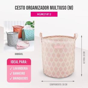 Cesto para Roupa Suja/ Brinquedos Tecido (M) LOFT Jacki Design Pink - ATENÇÃO OS PRODUTOS DA IMAGEM NÃO ACOMPANHA O CESTO LOFT SÃO SOMENTE ILUSTRATIVO!
