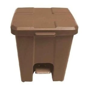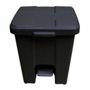 Medidas: 450mm altura x 335mm largura x 310mm profundidade . Lixeira plástica quadrada com pedal.
