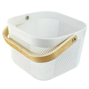 Cesto Quadrado Multiuso com Alça de Madeira 20x20cm 7021 Cor: Branco Mantenha sua casa organizada e estilosa com o Cesto Quadrado Multiuso com Alça de Madeira 20x20cm 7021 Perfeito para armazenar pequenos itens como brinquedos, roupas ou acessórios, este cesto é compacto e prático. Suas alças de madeira facilitam o transporte, tornando-o ideal para qualquer ambiente, desde o quarto até a sala de estar.