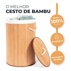 Apresentamos o incrível cesto de roupa suja em bambu com tampa redondo, perfeito para manter seu ambiente organizado e suas roupas protegidas de mau odor, mofo e umidade.
