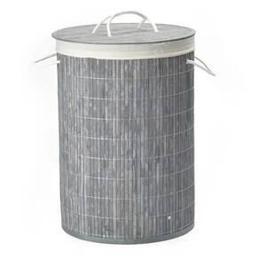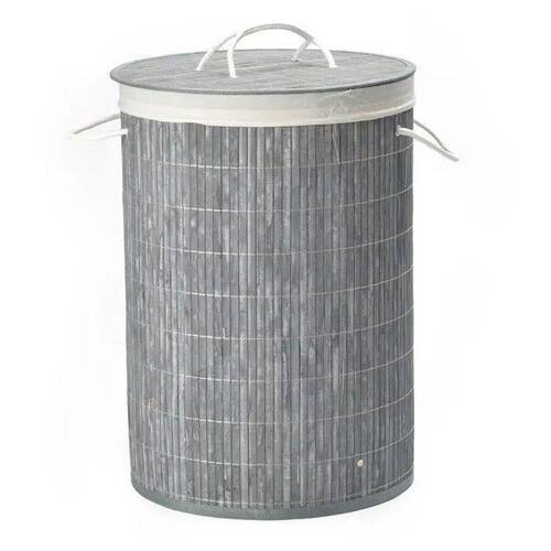 Cesto redondo forrado roupas sujas banheiro e lavanderia Cor: cinza Nome do produto: cesto redondo forrado roupas sujas banheiro e lavanderia Adorno entrancado de bambu- cesta 60x35 cm - acondicionado em caixas