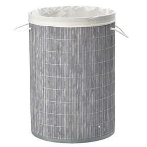 Cesto redondo forrado roupas sujas banheiro e lavanderia Cor: cinza Nome do produto: cesto redondo forrado roupas sujas banheiro e lavanderia Adorno entrancado de bambu- cesta 60x35 cm - acondicionado em caixas