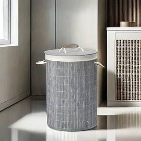 Apresentamos o incrível cesto de roupa suja em bambu com tampa redondo, perfeito para manter seu ambiente organizado e suas roupas protegidas de mau odor, mofo e umidade.