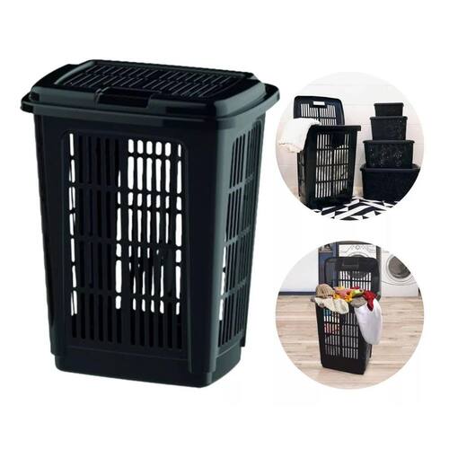 -01 Cesto de Lavanderia com Tampa - 60 Litros - Preto.