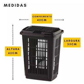 -material: Plástico resistente. -dimensões: Largura: 35 cm x Altura: 62 cm. -capacidade: 60 Litros. -peso: Aproximadamente 1,3 kg. -cor: Preto.
