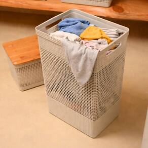 O cesto organizador multiuso 49L com tampa foi desenvolvido para armazenar roupas sujas e diversos itens com praticidade e discrição. Seu formato fechado ajuda a conter odores, enquanto o design fino permite encaixe em espaços pequenos, tornando-o ideal para apartamentos e áreas compactas.