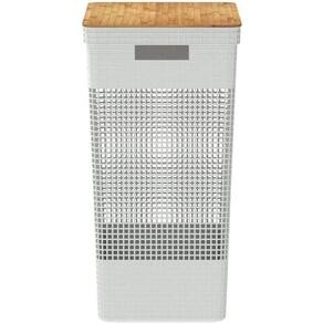 Cesto de roupas closet grid com tampa de bambu 49 litros cg 455 branco ou Cesto de roupa com tampa de bambu retangular banheiro lavanderia roupeiro organizador de brinquedos grid 49 litrosA linha de cestos grid foi desenvolvida com um mix perfeito entre conforto, design e funcionalidade. Os cestos possuem diversos tamanhos, são empilháveis e versáteis. São diversas opções com cores neutras e acabamento fosco, que combinam com qualquer ambiente. Podem ser utilizados em closets, cozinhas, lavanderias ou até mesmo na sala de estar para decorar.O cesto de roupas sujas grid com tampa de bambu 49 litros possui medidas de 39cm-profundidade x 29cm-largura x 55,6cm-altura e a capacidade de 49 litros. Além de possuir tampa em bambu que traz um toque a mais de sofisticação e elegância para qualquer ambiente da sua casa. Os cestos grid são perfeitos para aliar organização e decoração na sua casaProduzido de plástico 100% pós-consumo, proveniente de resíduos coletados do litoral brasileiro, com o objetivo de evitar que esse plástico chegue ao mar ou rios da região.Design minimalista, cores neutras, acabamento fosco, três elementos essenciais para a sofisticação.A linha traz diferentes tamanhos em seus produtos, adequando-se as necessidades de organização durante o dia a dia.É possível encaixar e empilhar os cestos de forma estável mesmo em tamanhos diferentes, facilitando a organização e visualização do que há dentro. Collab ou + fetiche design: a identidade da fetiche é misturar o industrial com o artesanal. Nós viemos com a pitada de ousadia, a ou trouxe o conhecimento de mercado e a técnica de fabricação que foram essenciais para chegarmos no resultado. Foi uma grande troca.DescriçõesMaterial: plástico atóxicoMedidas: altura 55m largura 29cm profundidade 39cmPeso: 1,100Marca: ouCores: bege, pretoContem: 1 cesto de roupa com tampa de bambu retangular banheiro lavanderia roupeiro organizador de brinquedos grid 49 litrosCuidados:Sugere-se higienizar com sabão neutro e esponja macia, evitando produtos abrasivos no processo de limpeza.Fotos meramente ilustrativas. As cores podem variar de acordo com calibragem de seu monitor