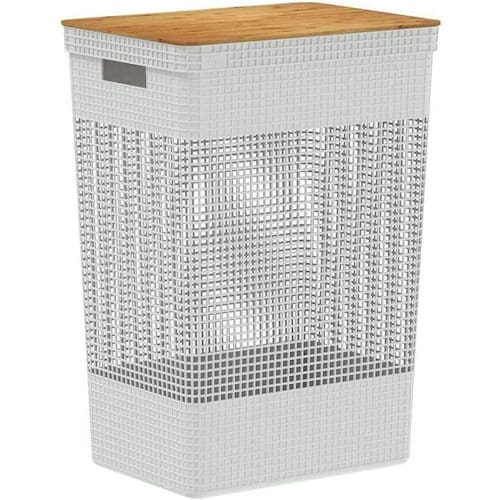 Cesto de roupas closet grid com tampa de bambu 49 litros cg 455 branco ou Cesto de roupa com tampa de bambu retangular banheiro lavanderia roupeiro organizador de brinquedos grid 49 litros A linha de cestos grid foi desenvolvida com um mix perfeito entre conforto, design e funcionalidade. Os cestos possuem diversos tamanhos, são empilháveis e versáteis. São diversas opções com cores neutras e acabamento fosco, que combinam com qualquer ambiente. Podem ser utilizados em closets, cozinhas, lavanderias ou até mesmo na sala de estar para decorar. O cesto de roupas sujas grid com tampa de bambu 49 litros possui medidas de 39cm-profundidade x 29cm-largura x 55,6cm-altura e a capacidade de 49 litros. Além de possuir tampa em bambu que traz um toque a mais de sofisticação e elegância para qualquer ambiente da sua casa. Os cestos grid são perfeitos para aliar organização e decoração na sua casa Produzido de plástico 100% pós-consumo, proveniente de resíduos coletados do litoral brasileiro, com o objetivo de evitar que esse plástico chegue ao mar ou rios da região. Design minimalista, cores neutras, acabamento fosco, três elementos essenciais para a sofisticação. A linha traz diferentes tamanhos em seus produtos, adequando-se as necessidades de organização durante o dia a dia. É possível encaixar e empilhar os cestos de forma estável mesmo em tamanhos diferentes, facilitando a organização e visualização do que há dentro.