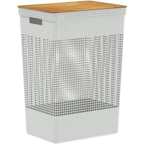 Cesto de roupas closet grid com tampa de bambu 49 litros cg 455 branco ou Cesto de roupa com tampa de bambu retangular banheiro lavanderia roupeiro organizador de brinquedos grid 49 litros A linha de cestos grid foi desenvolvida com um mix perfeito entre conforto, design e funcionalidade. Os cestos possuem diversos tamanhos, são empilháveis e versáteis. São com cores neutras e acabamento fosco, que combinam com qualquer ambiente. Podem ser utilizados em closets, cozinhas, lavanderias ou até mesmo na sala de estar para decorar. O cesto de roupas sujas grid com tampa de bambu 49 litros possui medidas de 39cm-profundidade x 29cm-largura x 55,6cm-altura e a capacidade de 49 litros. Além de possuir tampa em bambu que traz um toque a mais de sofisticação e elegância para qualquer ambiente da sua casa. Os cestos grid são perfeitos para aliar organização e decoração na sua casa Produzido de plástico 100% pós-consumo, proveniente de resíduos coletados do litoral brasileiro, com o objetivo de evitar que esse plástico chegue ao mar ou rios da região. Design minimalista, cores neutras, acabamento fosco, três elementos essenciais para a sofisticação. A linha traz diferentes tamanhos em seus produtos, adequando-se as necessidades de organização durante o dia a dia. É possível encaixar e empilhar os cestos de forma estável mesmo em tamanhos diferentes, facilitando a organização e visualização do que há dentro.
