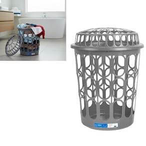 CESTO PARA ROUPAS 30L COM TAMPA TELADO ORGANIZADOR CINZA