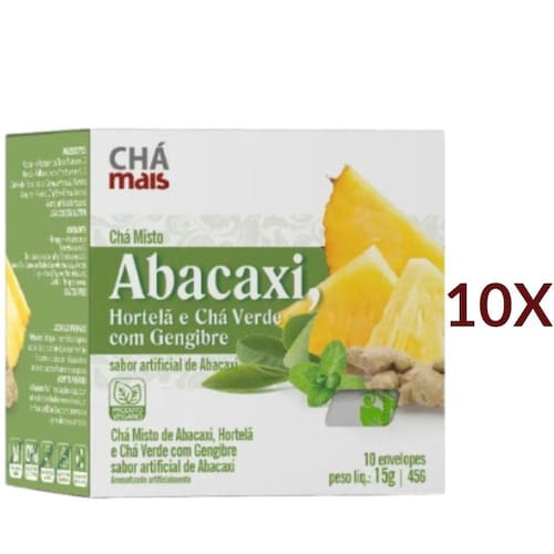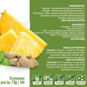 Chá de Abacaxi Chá Verde Hortelã e Gengibre Vegano Cx. 10 sachês Kit 10