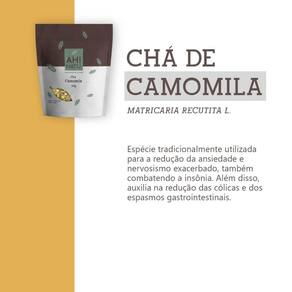 Chá de camomila 30g flor e caule linha premium ah natu O chá de camomila matricaria recutita l. tem ação principal sobre a ansiedade e o nervosismo, também combatendo a insônia. Além disso, auxilia na redução das cólicas e na eliminação dos gases. ========== Planta: camomila Nome científico: matricaria recutita l. Nome popular: camomila, camomila-alemã, camomila-comum, camomila-da-alemanhã, camomila-húngara, camomila-verdadeira, camomila-vulgar, macela-nobre, margaça, matricaria Família: arastaceae Parte utilizada: flor inflorescência e caule ========== Contraindicações: não deve ser em casos de gravidez e/ou lactação. ========== Modo de preparo: coloque 1 colher sopa de erva para cada litro de água. Adicione a água aquecida sobre a erva e deixe em infusão de 5 a 10 minutos. Então é só coar e beber. Se preferir tomar gelado, você pode adicionar pedras de gelo após o preparo. ========== Nossos ingredientes passam por um processo de esterilização que garante a segurança e a pureza dos produtos. além disso, auxilia na redução das cólicas e na eliminação dos gases. ========== Rendimento: cada embalagem 30g rende aproximadamente 10 xícaras de chá. Marca: Não Informado Ean: 7891947307559