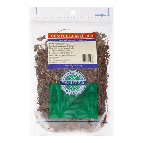 Chá de Centella Asiática 30g Panizza Chá de Centella Asiática 30g Panizza Descubra os benefícios do Chá de Centella Asiática 30g Panizza, um aliado natural para a circulação, bem-estar e cuidados com a pele.O Chá de Centella Asiática Panizza de 30g é uma escolha excelente para quem busca os benefícios de uma planta milenar. Originária de regiões úmidas e sombreadas, como o leste europeu e países da América do Sul Brasil e Venezuela , a Centella Asiática é reconhecida por suas propriedades terapêuticas. Utilizando principalmente as folhas, este chá atua como um poderoso normalizador da circulação, sendo um e natural. É amplamente procurado por seu efeito anticelulítico, prevenção de rugas, e por ser um e diurético. A Panizza garante a qualidade e eficácia de seus produtos, contribuindo para o equilíbrio e bem-estar geral. Diferenciais: Ação multifuncional: Atua como normalizador da circulação, e , promovendo uma sensação de leveza e bem-estar.Cuidado com a pele: Reconhecido por suas propriedades anticelulíticas, preventivas de rugas e por estimular a produção de colágeno, contribuindo para uma pele mais saudável.Equilíbrio holístico: Considerada uma planta tridoshica, a Centella Asiática ajuda a equilibrar os três doshas Vata, Pitta e Kapha , alinhando-se aos princípios da saúde integrativa.Qualidade Panizza: Desenvolvido pelo Laboratório Panizza, sinônimo de confiança e eficácia em produtos naturais para a saúde.Produto livre de glúten, adequado para diversas dietas e estilos de vida. Mais sobre o Produto: Além dos benefícios estéticos e circulatórios, o Chá de Centella Asiática é um coadjuvante no tratamento de condições como dermatoses, reumatismo, rachaduras da pele, varizes, psoríase e pernas pesadas e doloridas. Suas folhas selecionadas são a base para um chá com sabor amargo e uma leve nota adocicada, com potência refrescante e efeito pós-digestivo doce.A versatilidade da Centella Asiática permite não apenas o consumo como chá, mas também a utilização das ervas secas para medicar óleos, ampliando suas possibilidades de uso e aproveitamento de suas propriedades. Dicas de Uso: Para preparar o Chá de Centella Asiática, utilize a quantidade recomendada de folhas secas em água quente. Deixe em infusão por alguns minutos, coe e consuma. Pode ser tomado diariamente para aproveitar seus benefícios.Para outras aplicações, como a medicação de óleos, siga as orientações de um de saúde qualificado para garantir o uso adequado e seguro.Importante: Recomenda-se sempre consultar um de saúde antes de iniciar o uso regular, especialmente em casos de gravidez, lactação ou condições médicas preexistentes.Manter o produto em local fresco, seco e ao abrigo da luz para preservar suas propriedades.