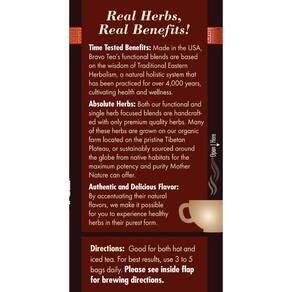- Bravo Tea São feitos à mão apenas com ervas de qualidade premium. As ervas são cultivadas em nossa fazenda orgânica no planalto tibetano intocado e provenientes de habitats nativos de forma sustentável em todo o mundo para garantir a máxima qualidade e pureza. O produto final é fabricado de acordo com os padrões cGMP nos EUA.
