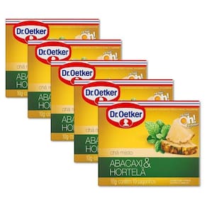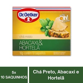 Sabor Tropical: Abacaxi e hortelã harmonizados em uma infusão refrescante. Praticidade no Preparo: Embalagem com 10 saquinhos individuais. Versatilidade: Pode ser consumido quente ou gelado. Ingredientes Naturais: Blend de chá preto com folhas de hortelã e pedaços de abacaxi. Qualidade Garantida: Um produto com a excelência da marca Dr. Oetker.