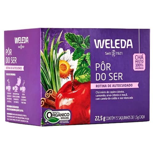 Chá Weleda Pôr do Ser Chá Misto Pôr do Ser 100% Orgânico Weleda Rotina de Autocuidado de Capim-Cidreira, Camomila, Erva-Cidreira e Maçã com Canela-do-Ceilão e Noz-Moscada. Modo de preparo: Coloque um