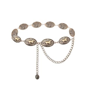 Cintos de corrente de bronze para roupas ocidentais - ?Observe o tamanho? Cintos de cowgirl para mulheres, conchos de metal envolvem totalmente a cintura 71,1 cm (P) / 81,3 cm (M) / 91,4 cm (G), ajuste de cintura até 89 cm (P) / 101,6 cm (M) / 114,3 cm (C) pela corrente de extensão. - ?Encantador e requintado? Cinto de cowboy para mulheres, com detalhes complexos e materiais de alta qualidade. Este cinto é mais do que apenas um acessório; é uma peça de declaração que adiciona um toque de sofisticação a qualquer conjunto. - ?Adequado para qualquer ocasião? Cinto western marrom, fica incrível com qualquer roupa. Excelente para combinar com seus vestidos, saias, camisas, jeans, calças de couro, roupas de biquíni, em diferentes ocasiões, como trabalho, compras, viagens, festas, carnaval, encontros, boates. - ?Estável e confortável? Roupa de vaqueira feminina, nosso cinto de vaqueira garante um ajuste estável e confortável que permanece no lugar durante todo o dia. Se você estiver dançando em um show ou simplesmente curtindo uma reunião temática country, este cinto é seu companheiro confiável. - ?Presente incrível para ela? O cinto de cavalo é um maravilhoso presente de aniversário, presente de formatura, presente de aniversário de casamento, presente de férias, presente de dia dos namorados, presente de dia das mães, presente de Páscoa, presente de Ação de Graças, presente de Natal.