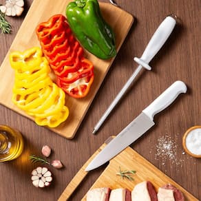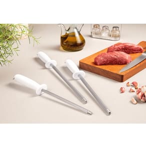 A chaira Mundial Masterline 8' é um item indispensável para que você possa manter suas facas sempre afiadas. Produzida com haste em aço carbono, é uma chaira estriada altamente resistente e durável que garante fio perfeito para suas lâminas. Cabo em polipropileno na cor branca proporciona um manuseio confortável e seguro, pois possui textura que auxilia para que suas mãos não deslizem pela peça. Fabricada com todo o 'know-how' da Mundial, este amolador de facas é ideal para quem quer aprender a cozinhar, até o mai experiente profissional.