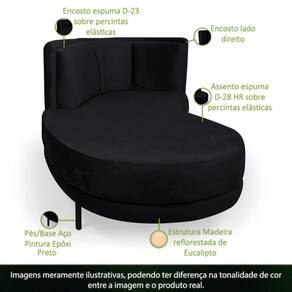 Chaise Direito Sala De Estar Penélope Base Preto Veludo Preto - Nexta Casa Descrição do Produto A Chaise Penélope tem um design único encantadora, além da sua beleza estética proporciona maciez e aconchego inigualável. Sua estrutura é desenvolvida com madeira reflorestada de eucalipto que tem sinônimo de qualidade, com pés e base em aço que garante maior resistência ao produto, e pensando no bem-estar dos nossos clientes foi confeccionada com espumas D-28 e D-23 que ao sentar transmitirá conforto deixando você e os seus convidados apaixonados. A Chaise Penélope se encaixa perfeitamente em qualquer tipo de ambiente, é uma peça que combina com diversas cores e decorações. Aproveita e Garante já a sua! Dimensões do Produto: Altura: 82 cm Largura: 163 cm Profundidade: 100 cm Peso: 35 Kg