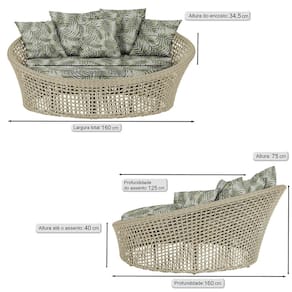 A trama artesanal em corda náutica adiciona um toque moderno e elegante, além de proporcionar flexibilidade e conforto inigualáveis. Para completar, o estofado em tecido impermeável assegura praticidade e bem-estar em qualquer ambiente, seja na área externa ou interna.