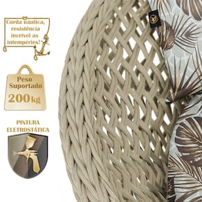 A trama artesanal em corda náutica adiciona um toque moderno e elegante, além de proporcionar flexibilidade e conforto inigualáveis. Para completar, o estofado em tecido impermeável assegura praticidade e bem-estar em qualquer ambiente, seja na área externa ou interna.