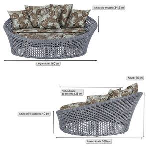 A trama artesanal em corda náutica adiciona um toque moderno e elegante, além de proporcionar flexibilidade e conforto inigualáveis. Para completar, o estofado em tecido impermeável assegura praticidade e bem-estar em qualquer ambiente, seja na área externa ou interna.