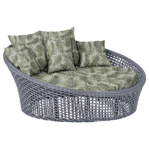 A trama artesanal em corda náutica adiciona um toque moderno e elegante, além de proporcionar flexibilidade e conforto inigualáveis. Para completar, o estofado em tecido impermeável assegura praticidade e bem-estar em qualquer ambiente, seja na área externa ou interna.