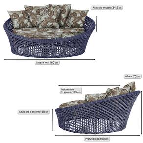 A trama artesanal em corda náutica adiciona um toque moderno e elegante, além de proporcionar flexibilidade e conforto inigualáveis. Para completar, o estofado em tecido impermeável assegura praticidade e bem-estar em qualquer ambiente, seja na área externa ou interna.