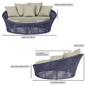 A trama artesanal em corda náutica adiciona um toque moderno e elegante, além de proporcionar flexibilidade e conforto inigualáveis. Para completar, o estofado em tecido impermeável assegura praticidade e bem-estar em qualquer ambiente, seja na área externa ou interna.