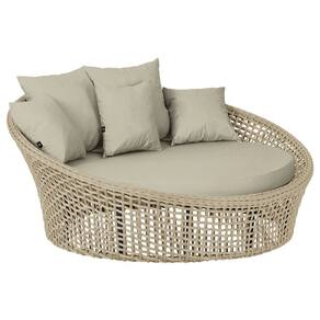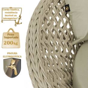 A trama artesanal em corda náutica adiciona um toque moderno e elegante, além de proporcionar flexibilidade e conforto inigualáveis. Para completar, o estofado em tecido impermeável assegura praticidade e bem-estar em qualquer ambiente, seja na área externa ou interna.