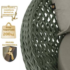 A trama artesanal em corda náutica adiciona um toque moderno e elegante, além de proporcionar flexibilidade e conforto inigualáveis. Para completar, o estofado em tecido impermeável assegura praticidade e bem-estar em qualquer ambiente, seja na área externa ou interna.