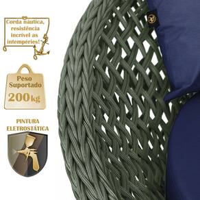 A trama artesanal em corda náutica adiciona um toque moderno e elegante, além de proporcionar flexibilidade e conforto inigualáveis. Para completar, o estofado em tecido impermeável assegura praticidade e bem-estar em qualquer ambiente, seja na área externa ou interna.