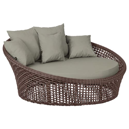 A trama artesanal em corda náutica adiciona um toque moderno e elegante, além de proporcionar flexibilidade e conforto inigualáveis. Para completar, o estofado em tecido impermeável assegura praticidade e bem-estar em qualquer ambiente, seja na área externa ou interna.
